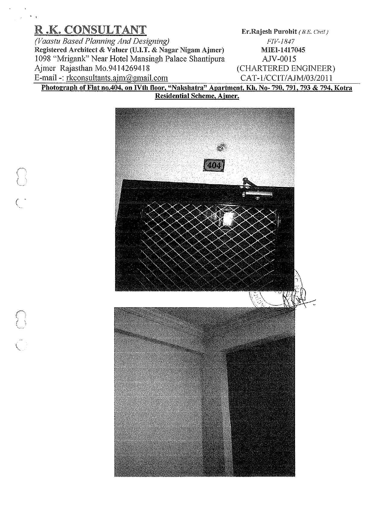 Flat No.404, Fourth Floor, Nakshatra Residency Appartment, GyanVihar, Residential Scheme Kotra, Ajmer Rajasthan. Admeasuring Area 880 sq feet. and Situated Kh.No.790,791,794 and that Plot No. is bounded as – By North – Other Property ,By South – Part Of Gyan Vihar Colony, By East – Other Property , By West – Road.
